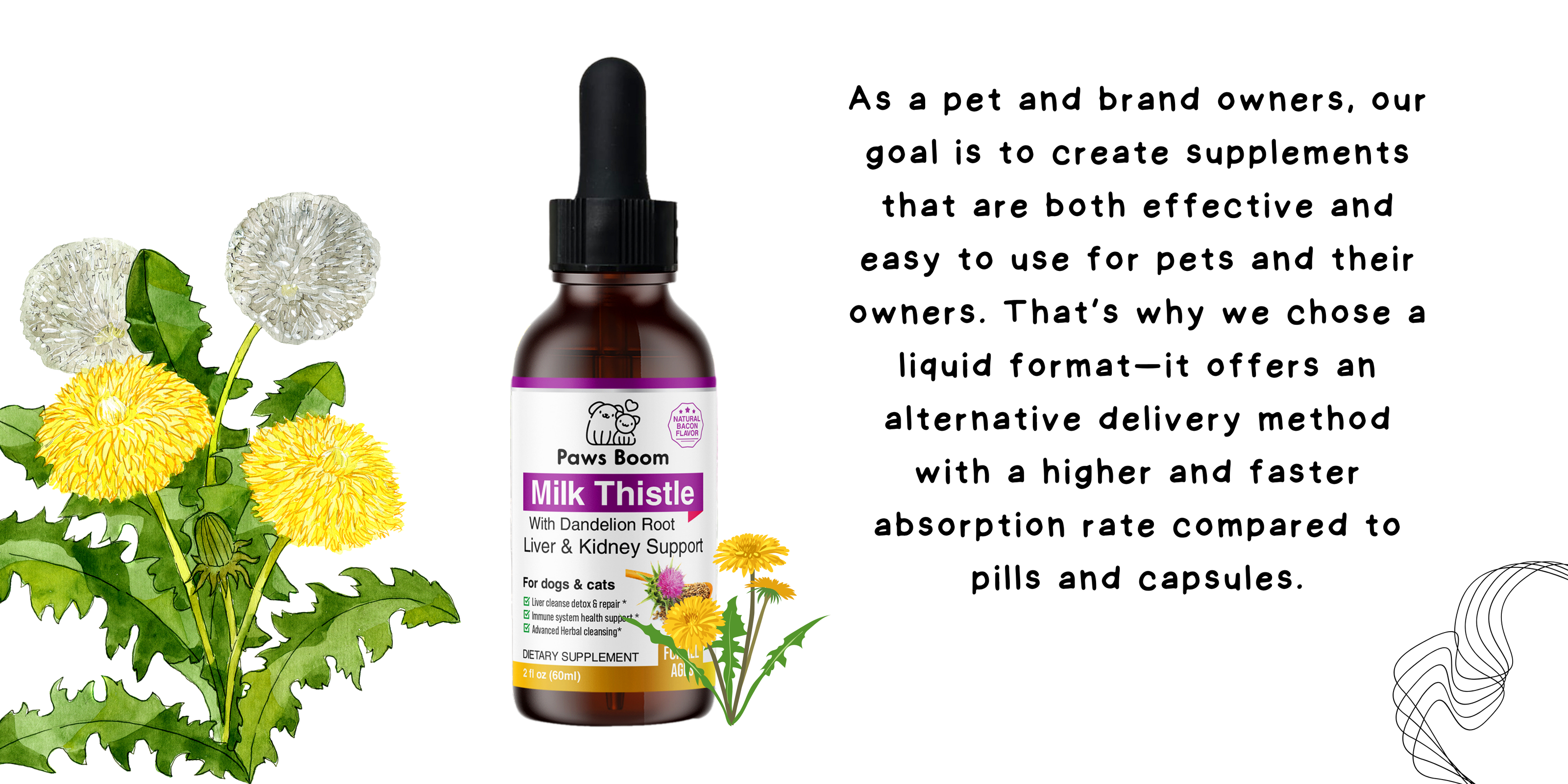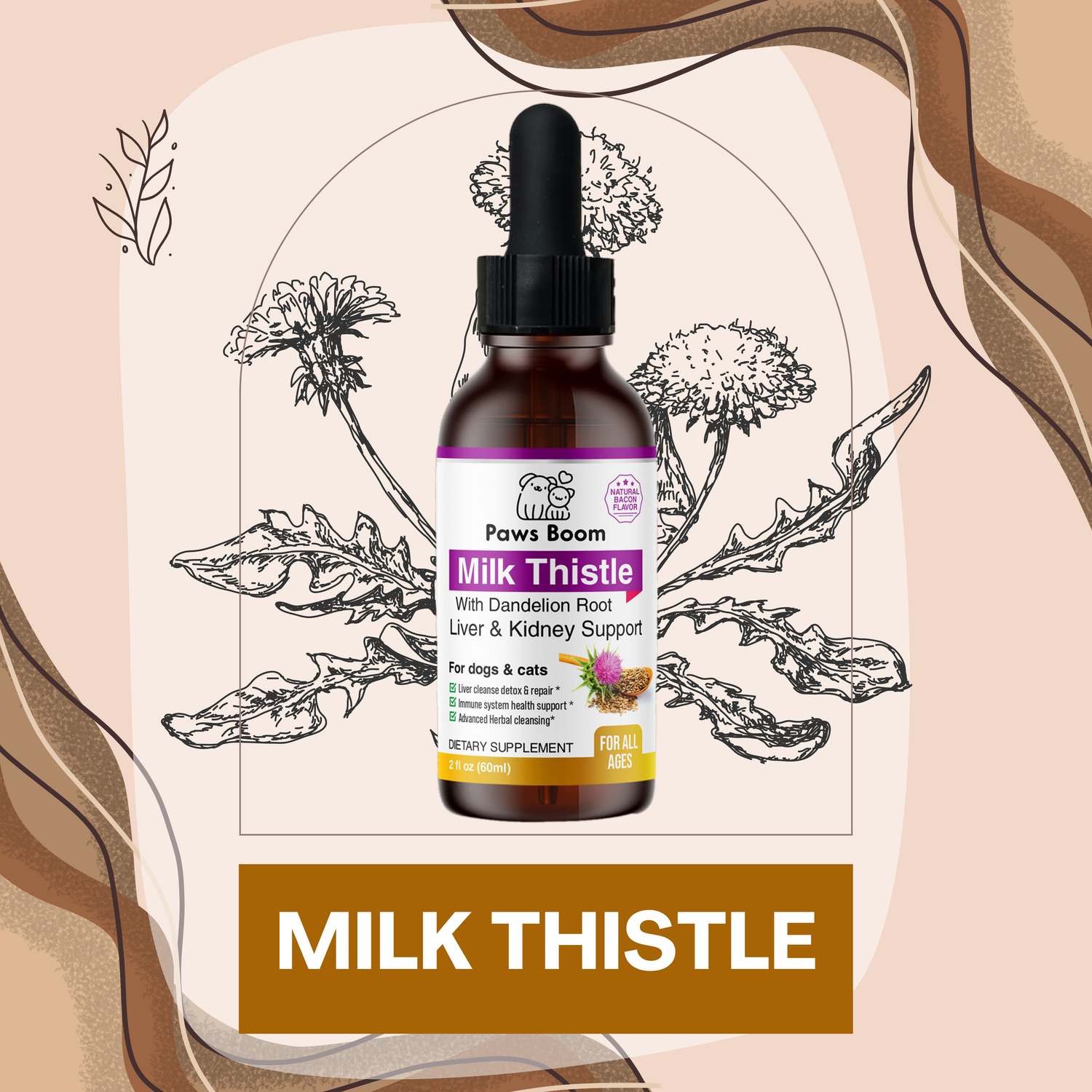 Milk Thistle for Dogs and Cats | Liver Cleanse Detox & Repair with Dandelion Root | Kidney Support Supplement| Herbal Remedy | Denamarin for Dogs| Natural Liquid Vitamins| Bacon Flavor | 2 oz (60 ml)